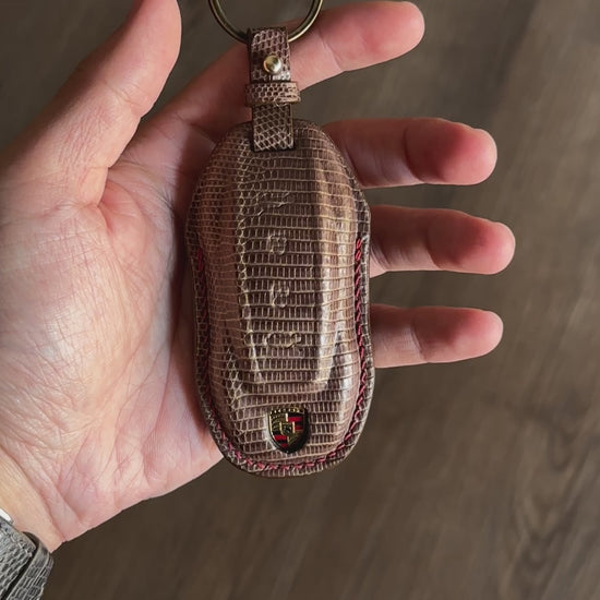 Porsche key fob cover, Porsche Leather key case, Lizard leather